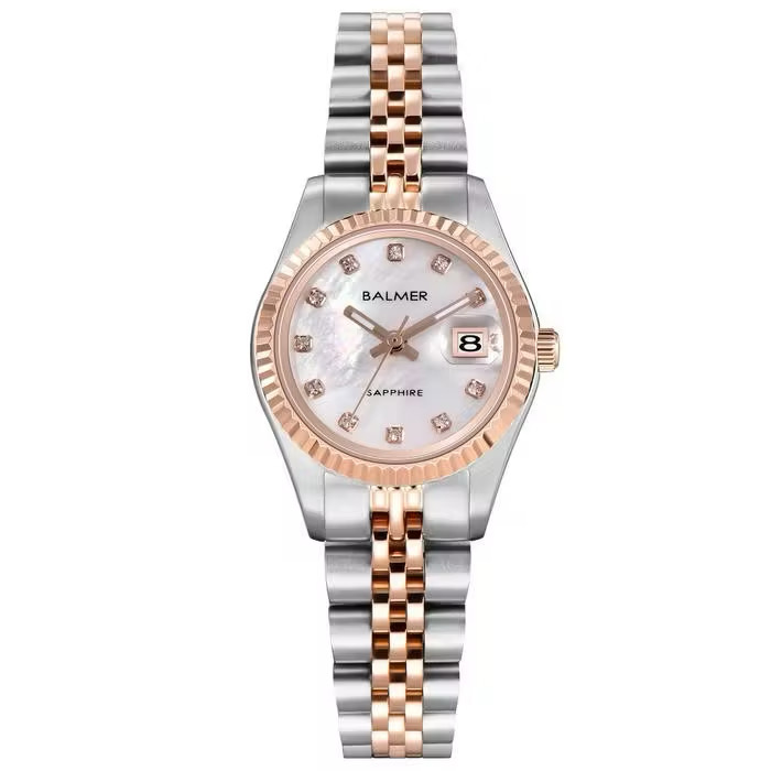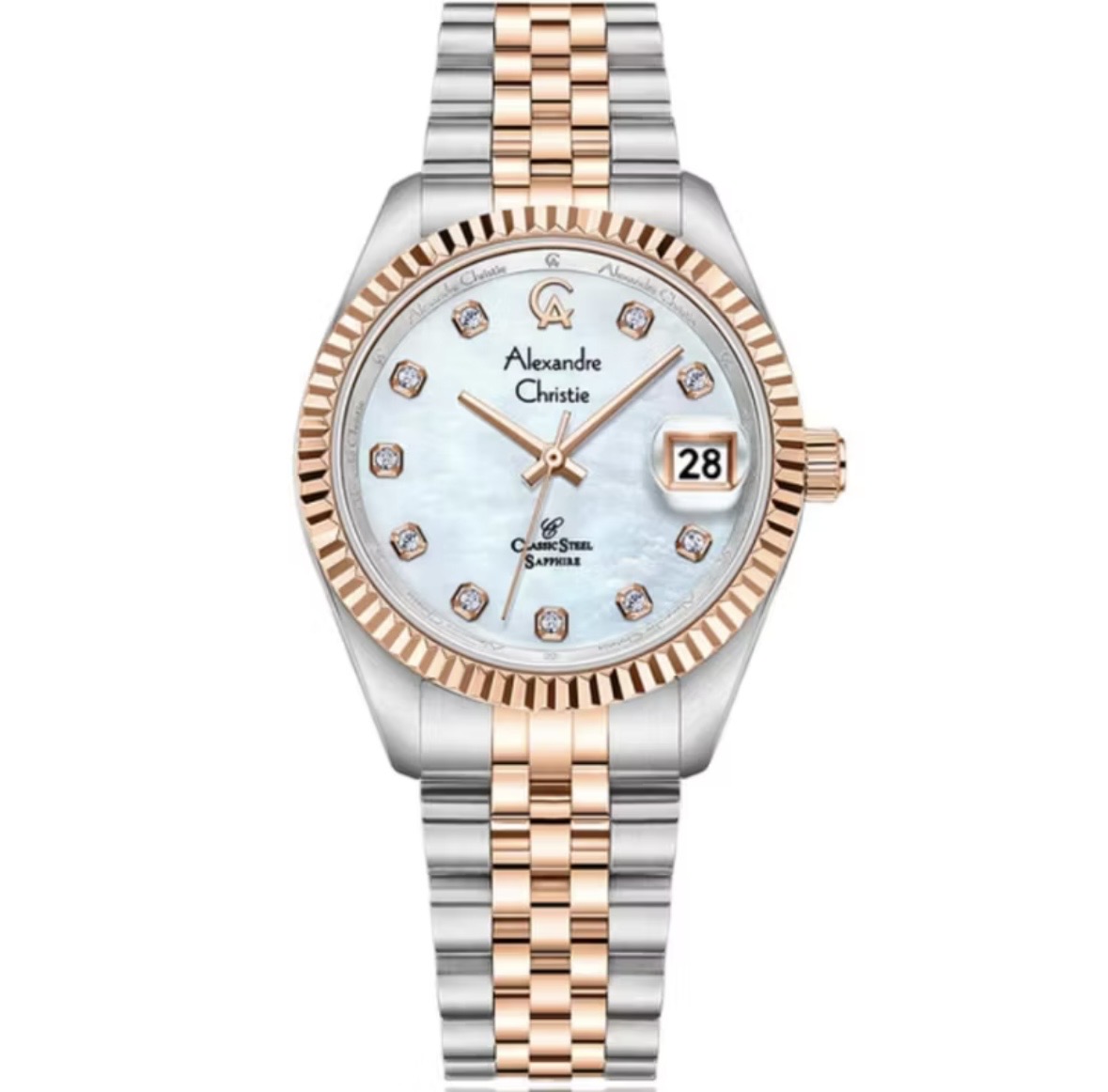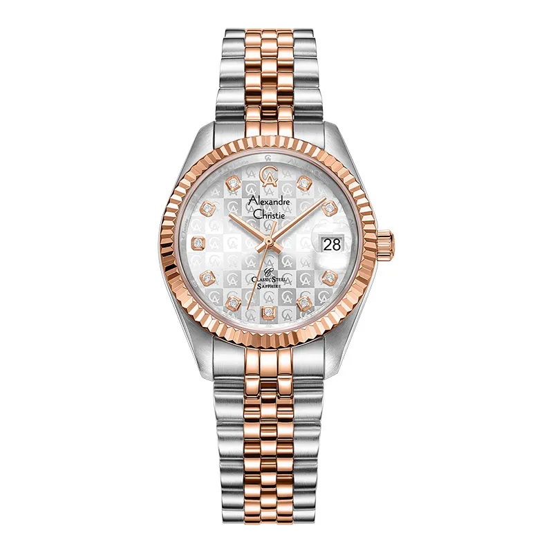 Jam Tangan Wanita ALEXANDRE CHRISTIE AC5014 Silver Combi Rosegold Dial White SAPPHIRE Stainless S