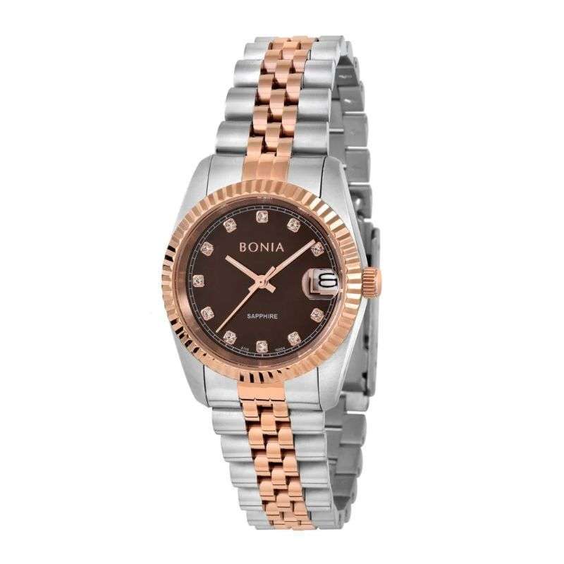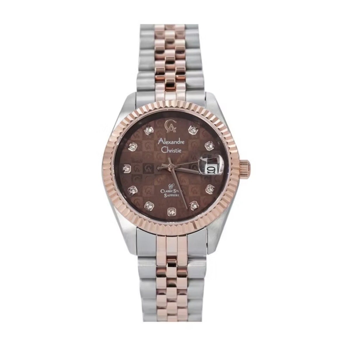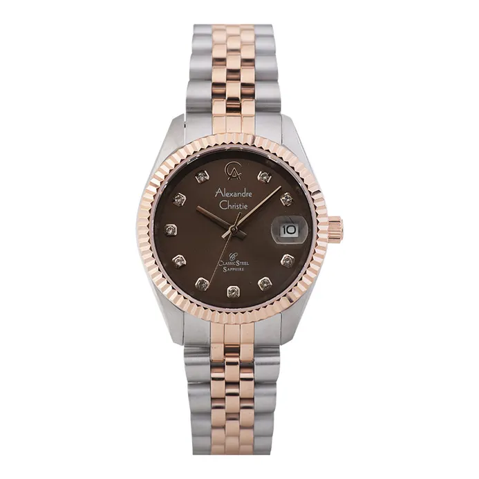 Jam Tangan Wanita ALEXANDRE CHRISTIE AC5014 Silver Combi Rosegold Dial Brown SAPPHIRE Stainless S