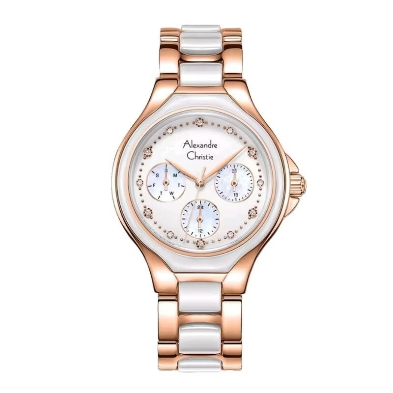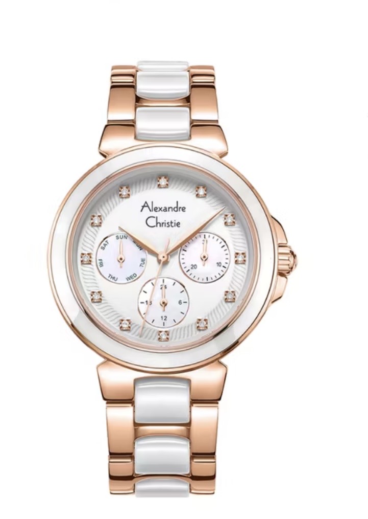 Jam Tangan Wanita Alexandre Christie AC 2B82 Rosegold Dial White St. Steel With Ceramic Strap
