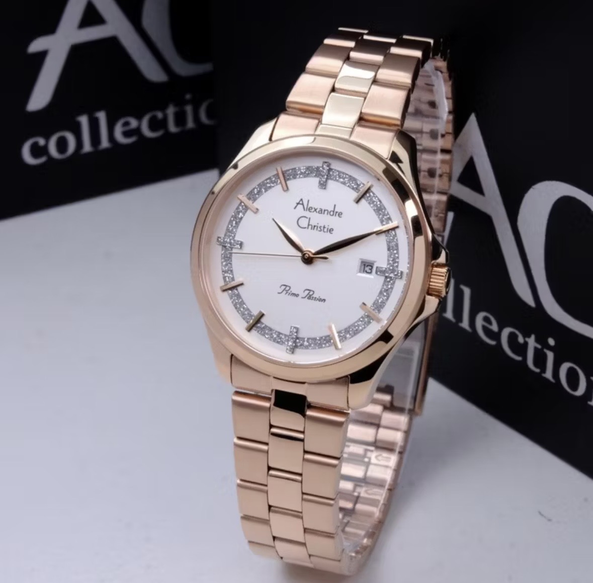 Jam Tangan Wanita Alexandre Christie Primo Passion AC 2A76 Rosegold Dial White St Steel