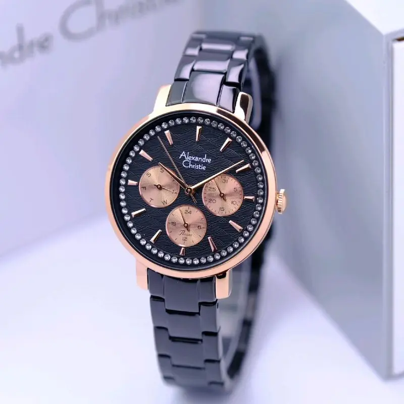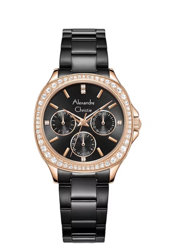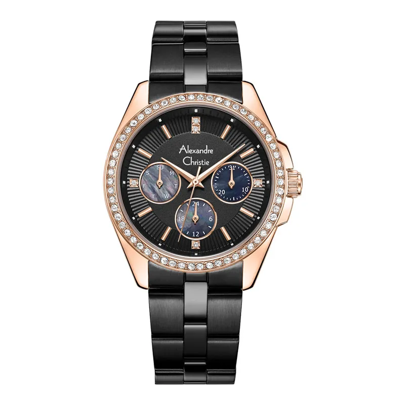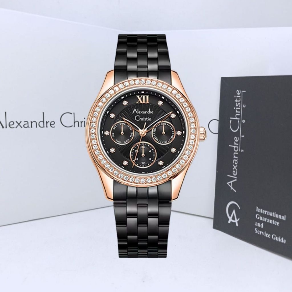 Jam Tangan Wanita Alexandre Christie Multifunction AC 2B85 BFBBRDG Black Dial Black Stainless St