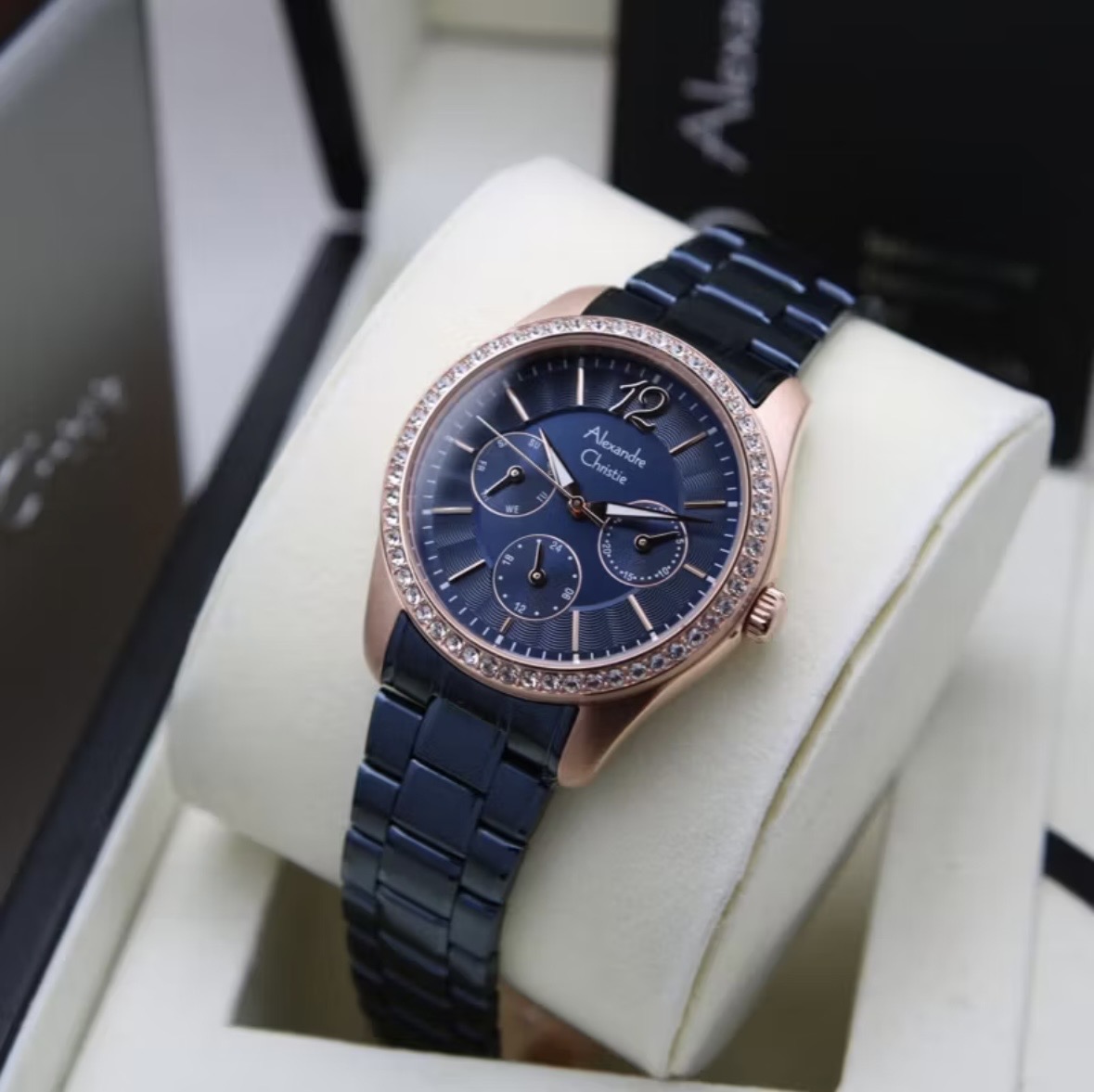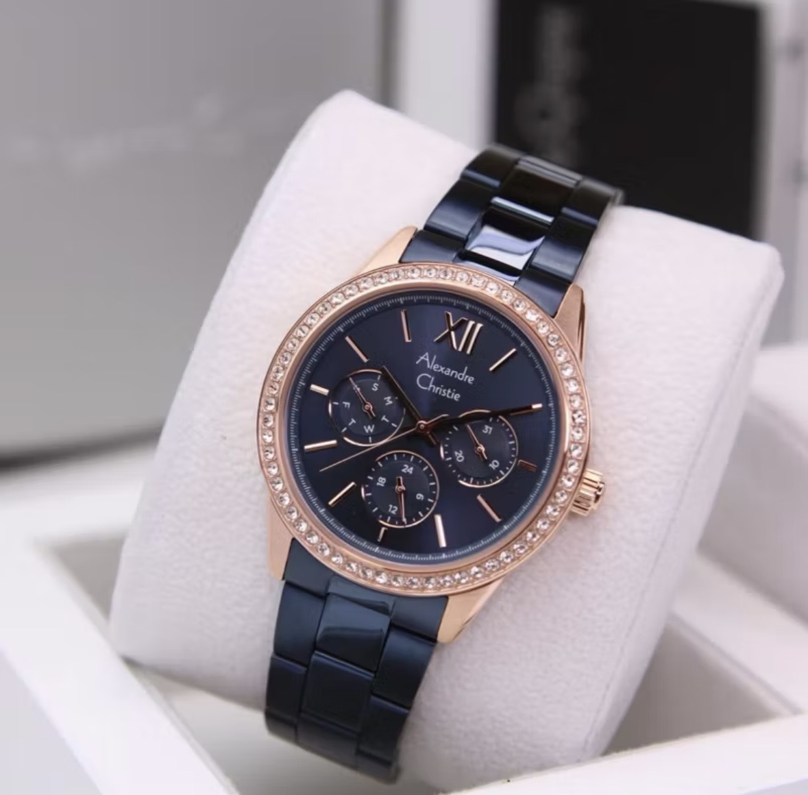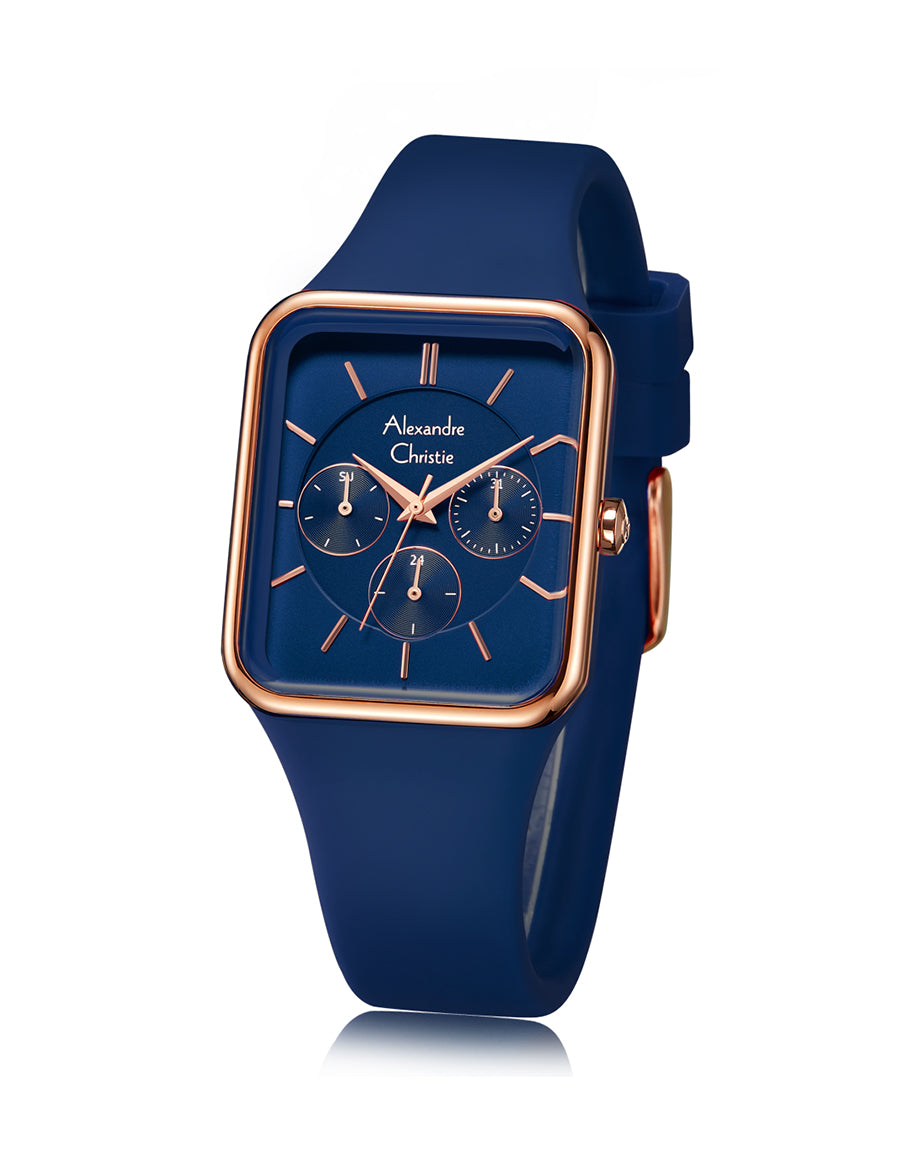 Jam Tangan Wanita Alexandre Christie Multifunction AC 2A46 BF Navy Rosegold Dial Navy Blue Stainl