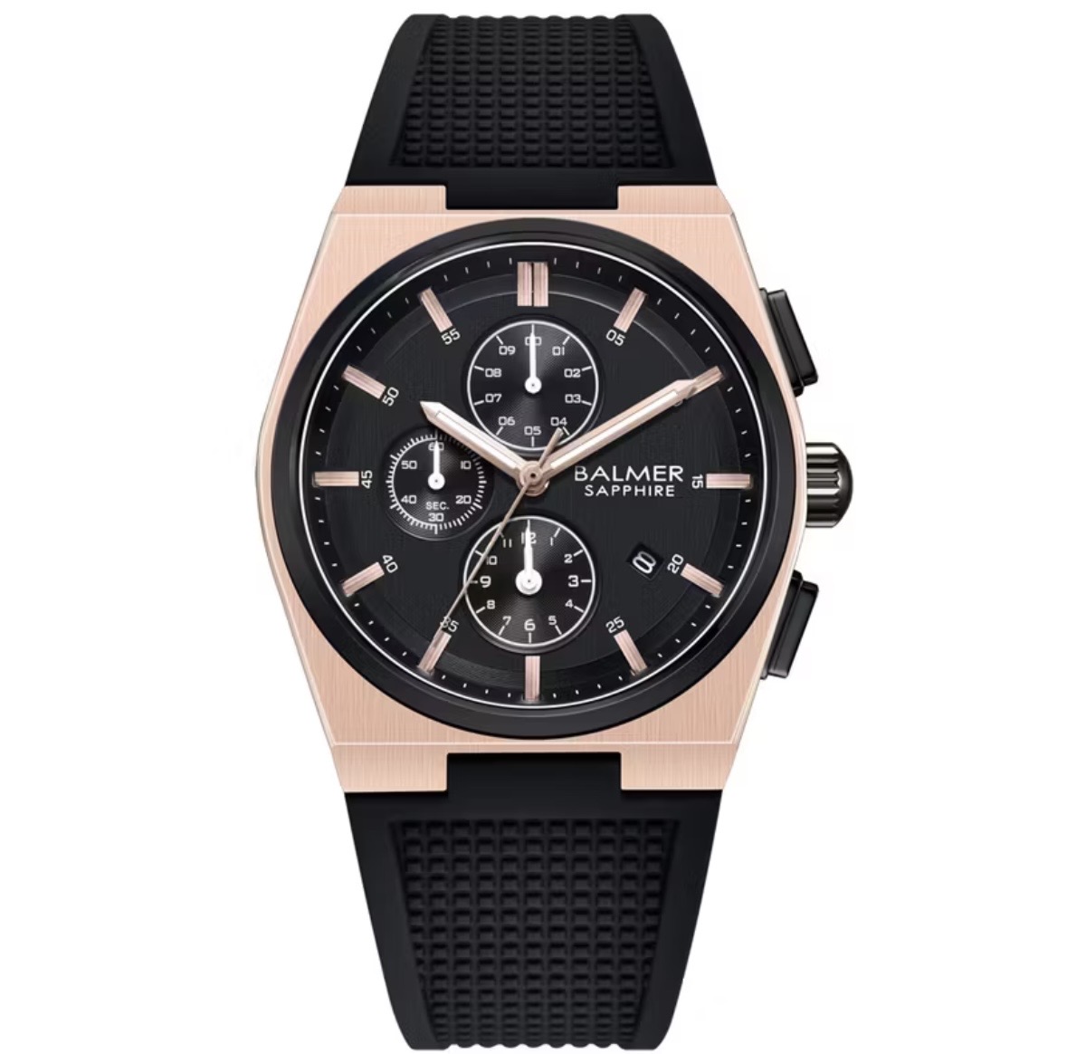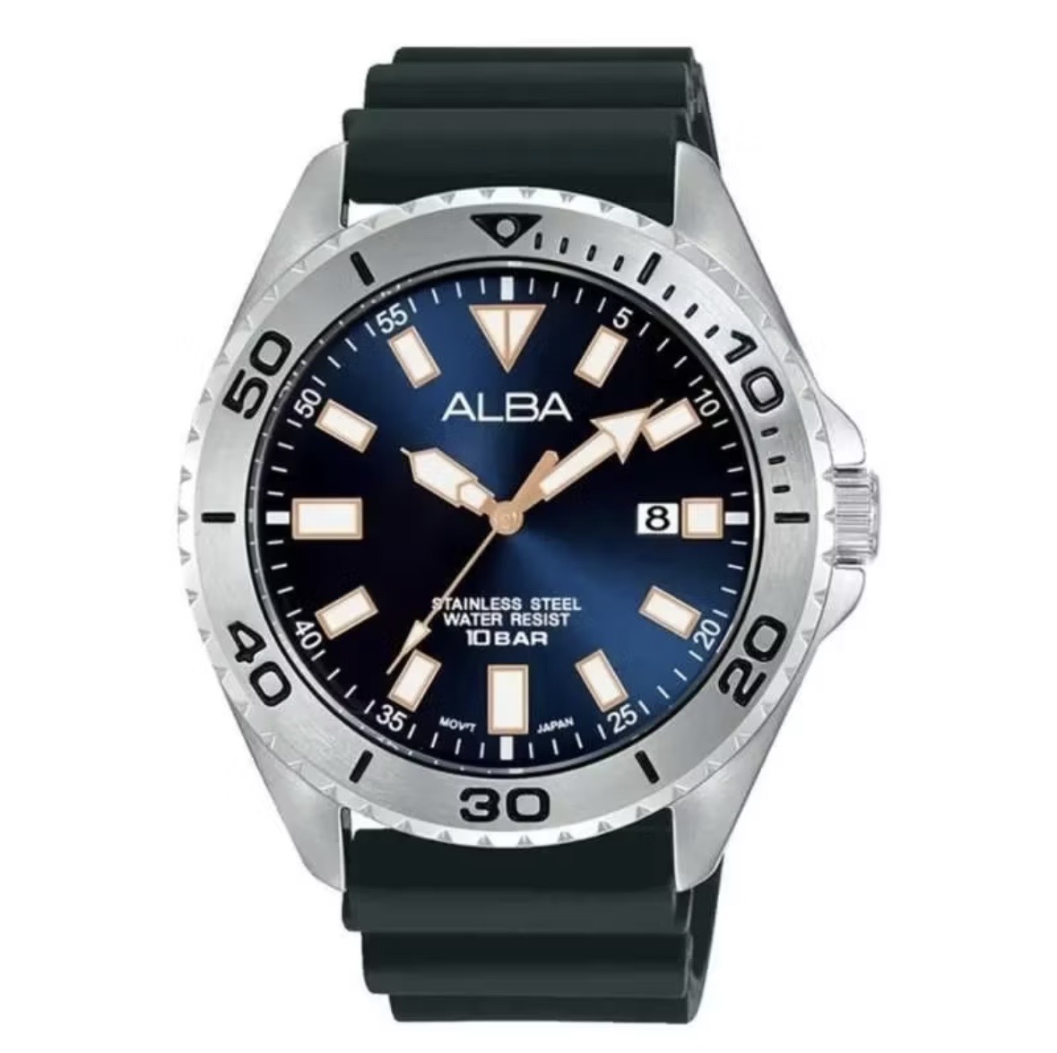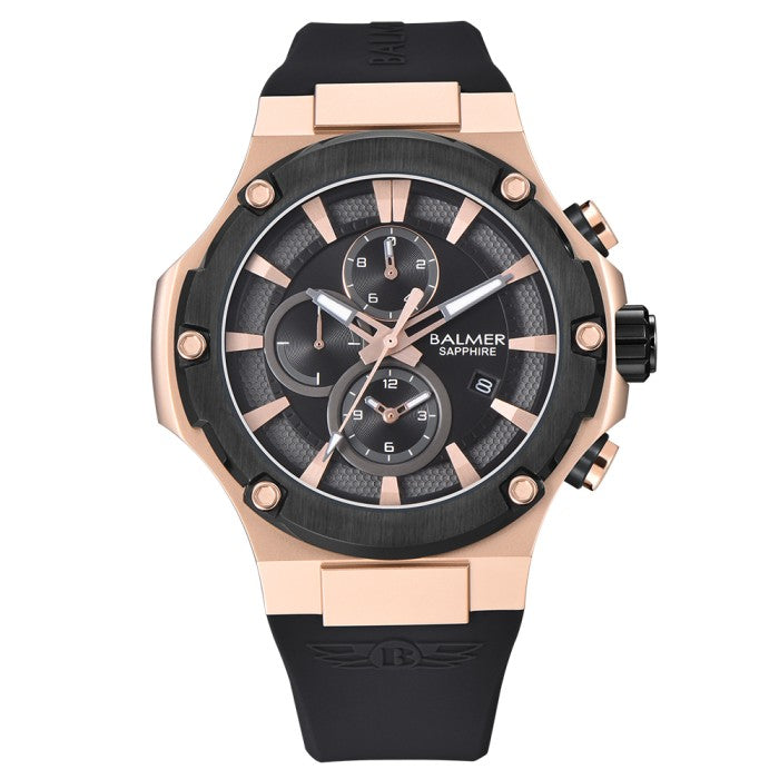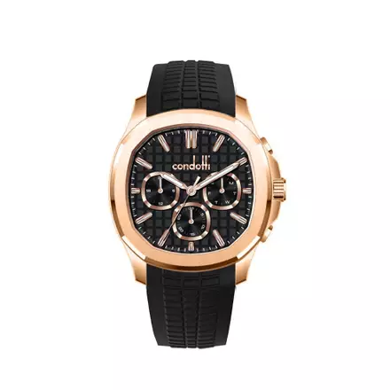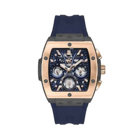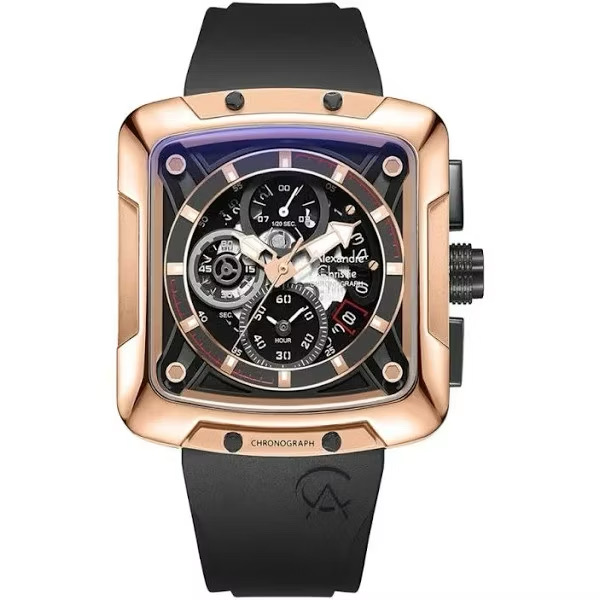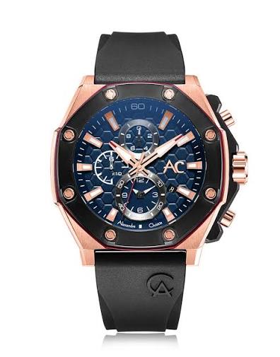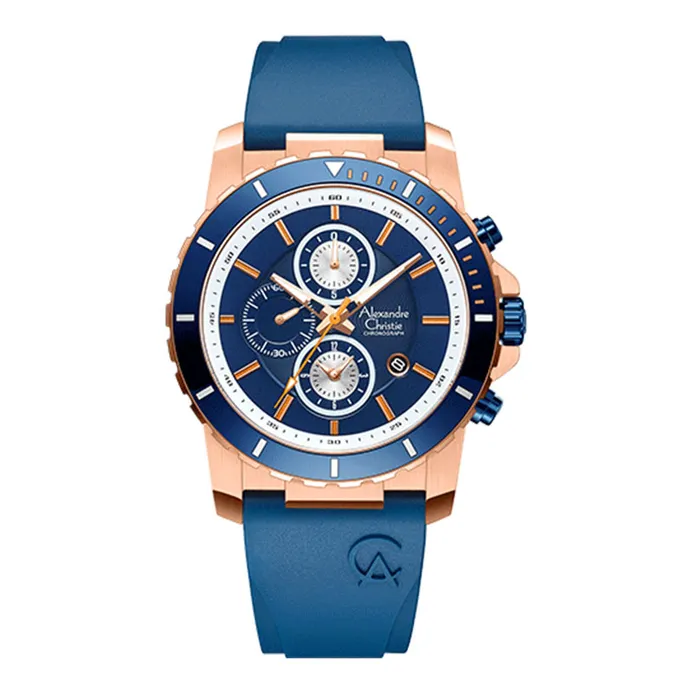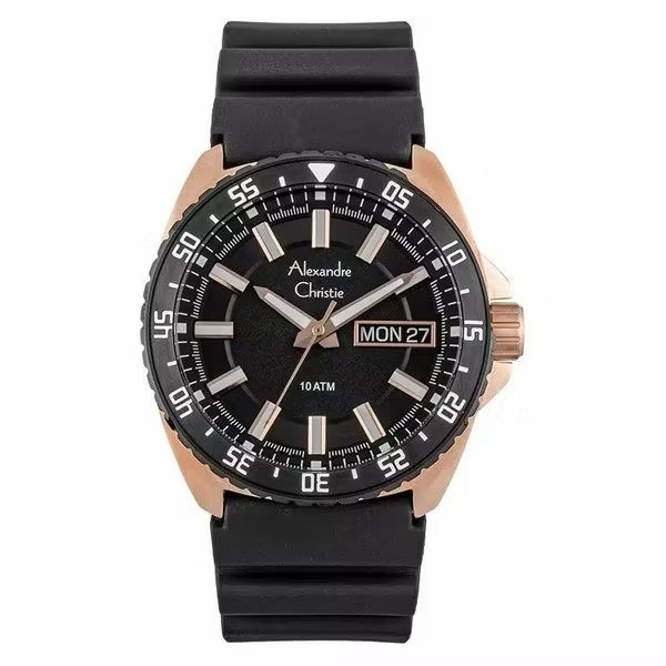 Jam Tangan Pria Alexandre Christie Collection AC9205 Black Navy Rosegold Rubber Strap
