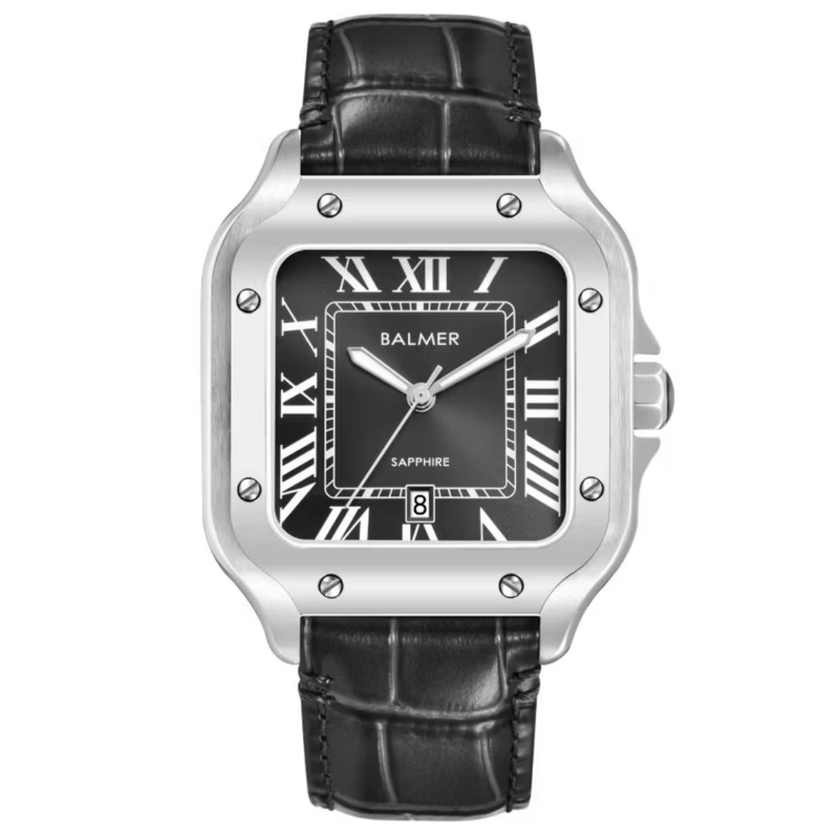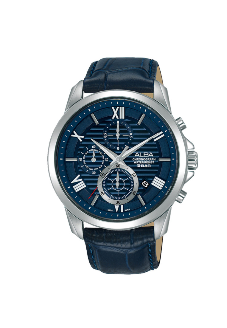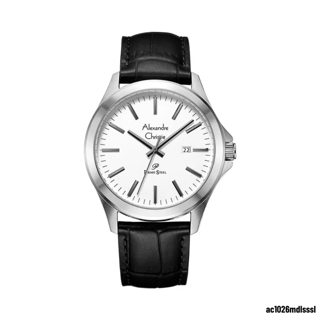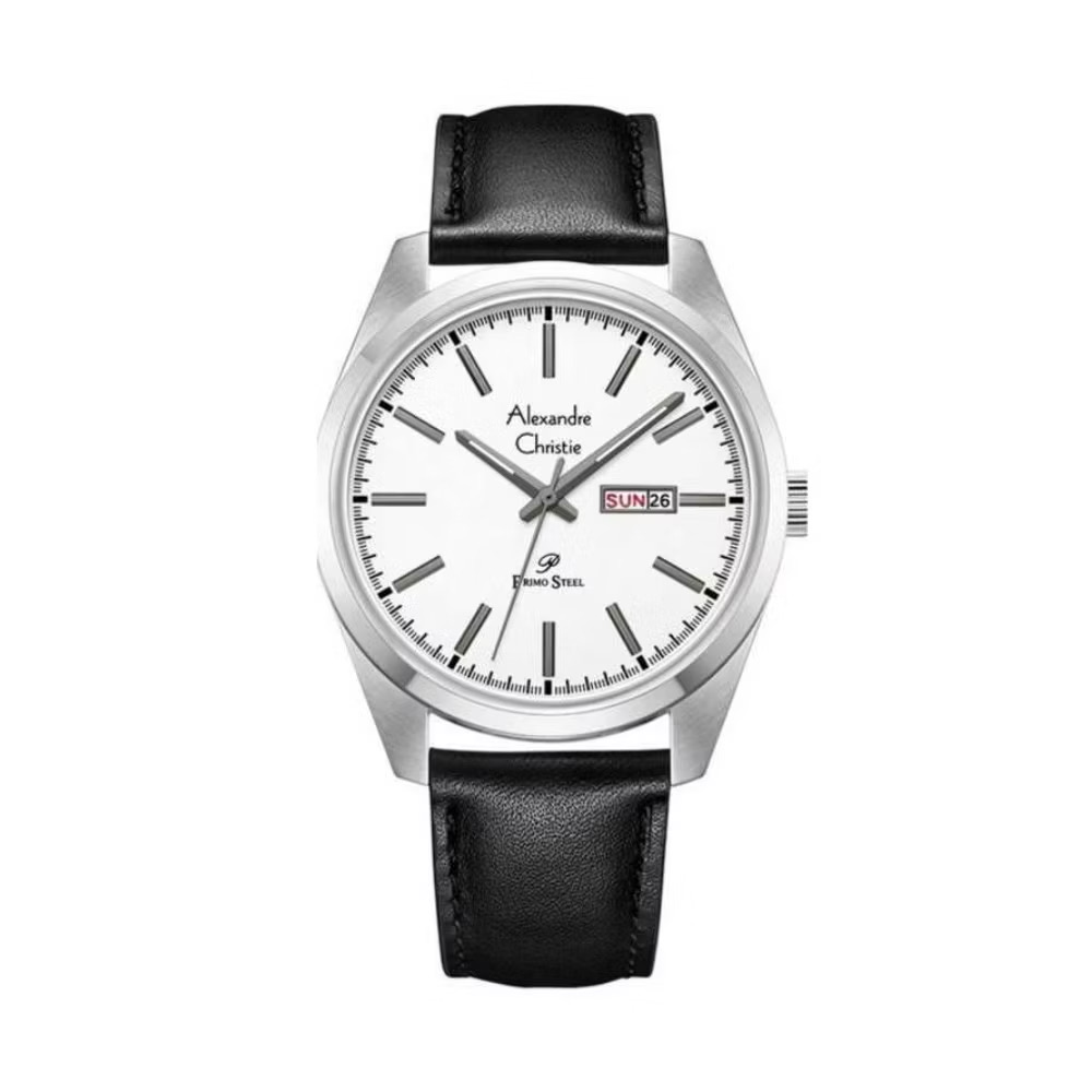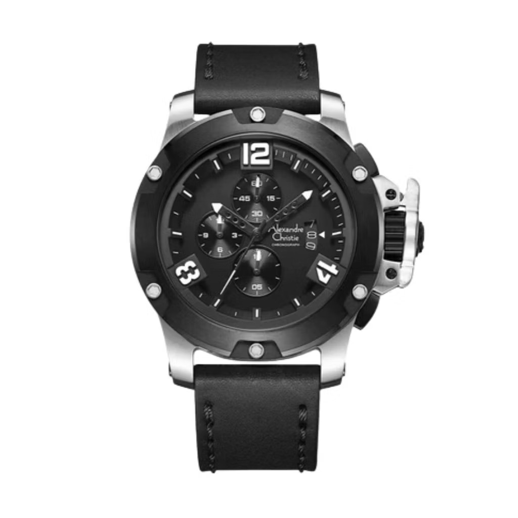 Jam Tangan Pria Alexandre Christie AC6376 Black Silver Leather Strap