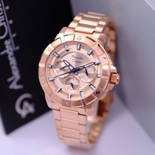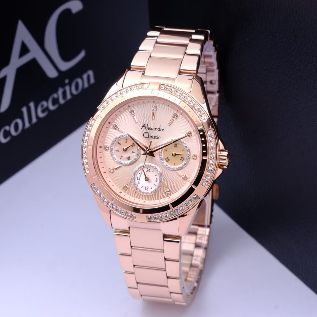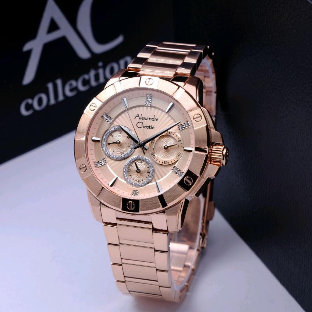am Tangan Wanita Alexandre Christie Multifunction AC 2496 BF Rose Gold Stainless Steel Strap