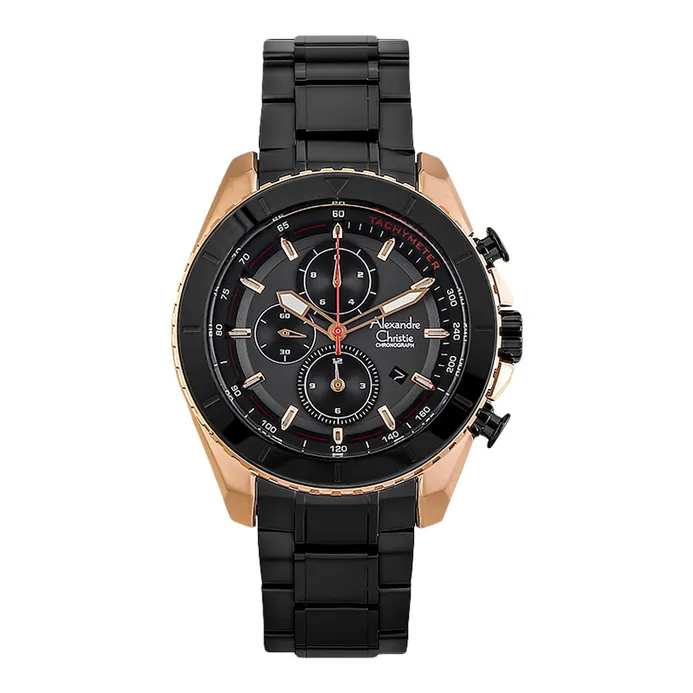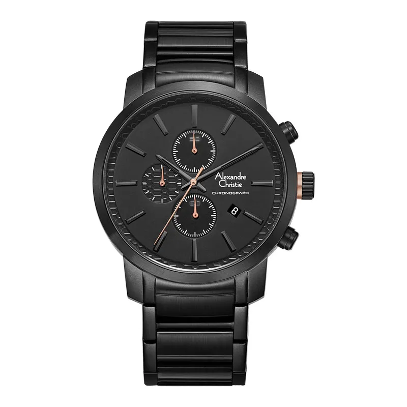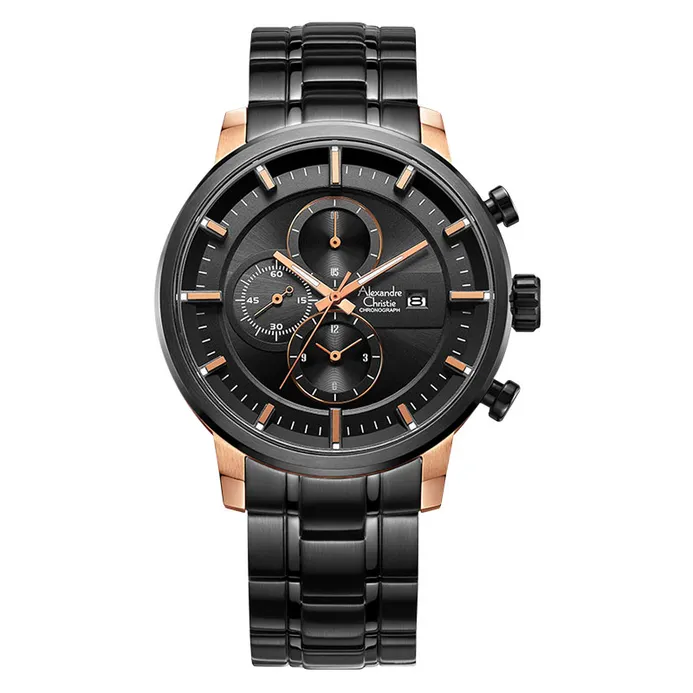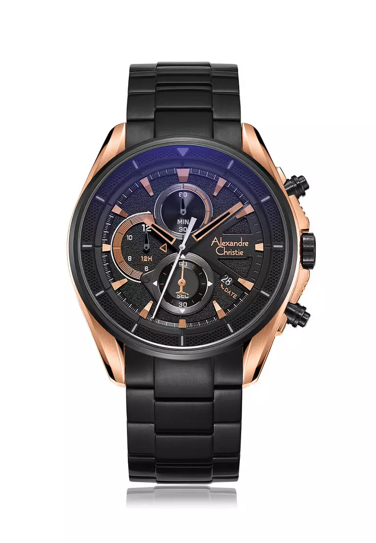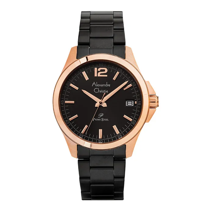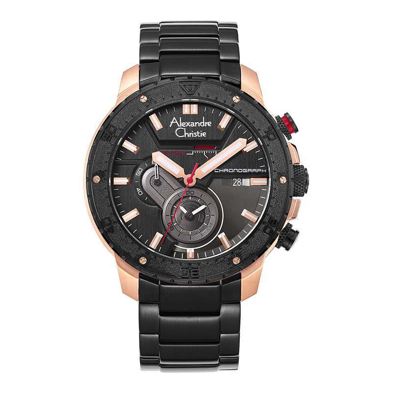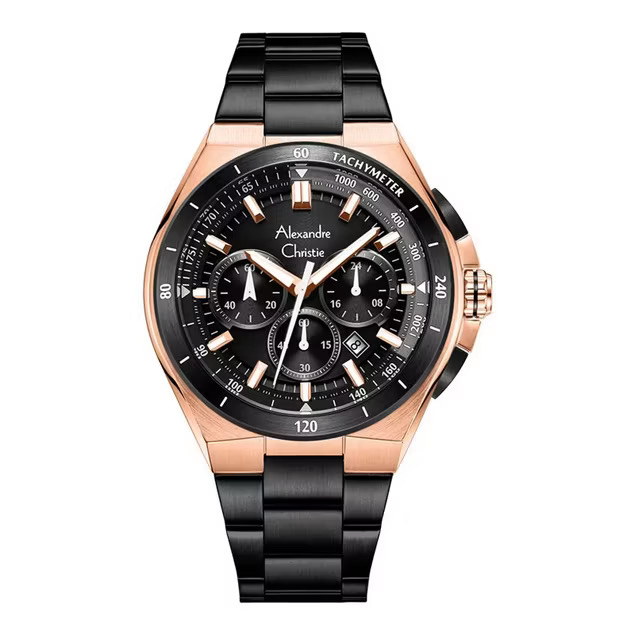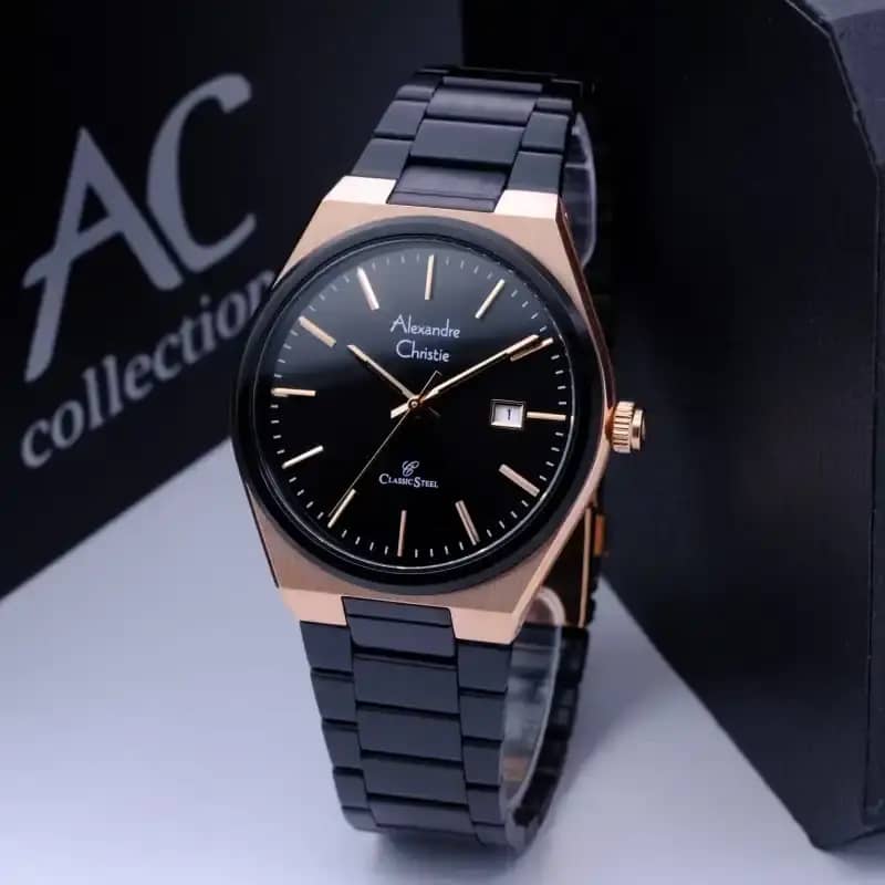 Jam Tangan Pria Alexandre Christie AC 1031 Black Rosegold Stainless steel