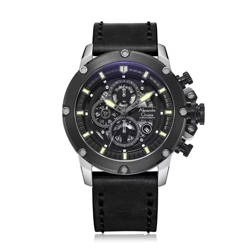 Jam Tangan Pria Alexandre Christie AC6506 Black Leather Strap