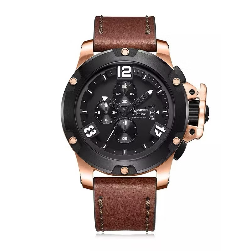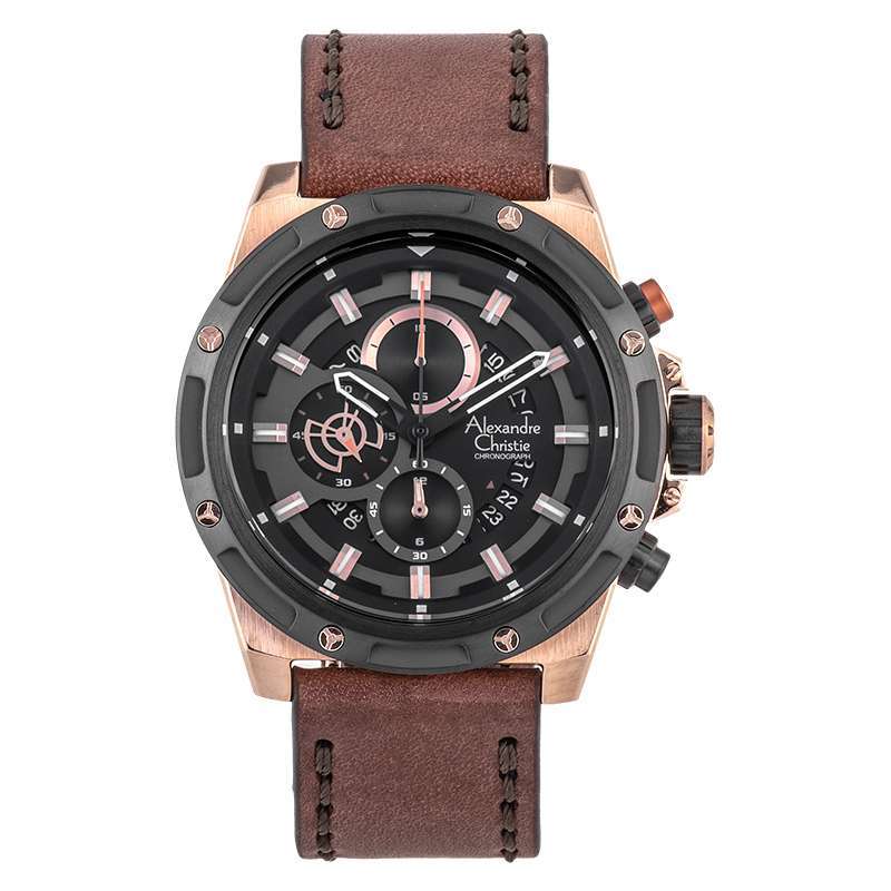 Jam Tangan Pria Alexandre Christie AC6437 Brown Rosegold Leather Strap