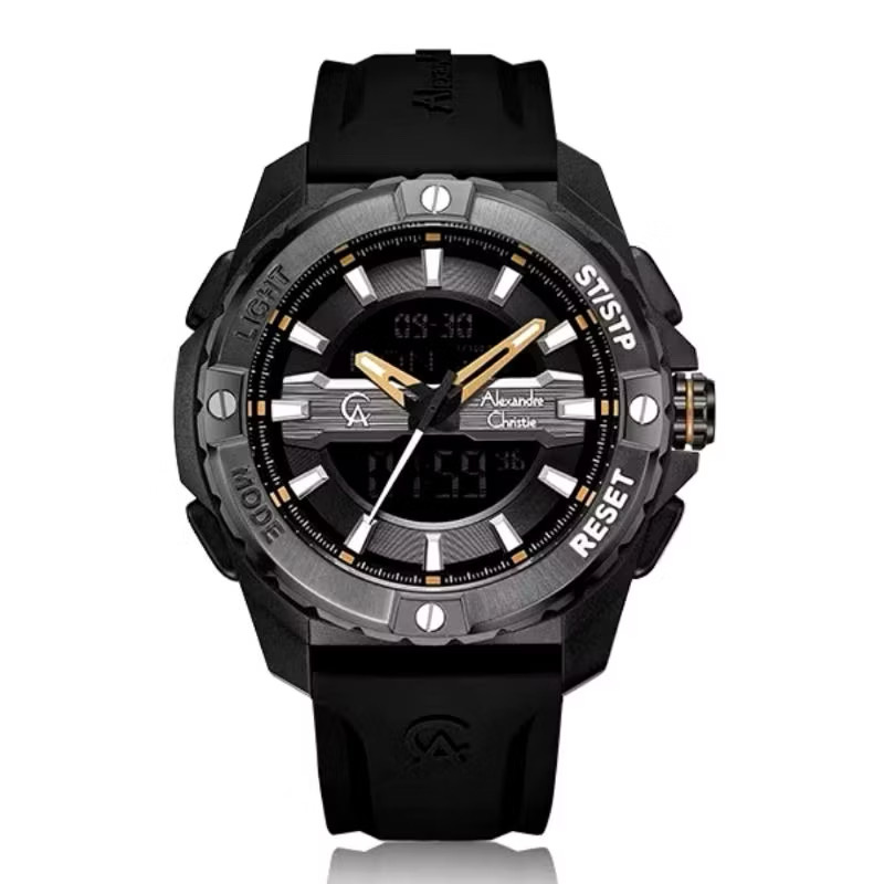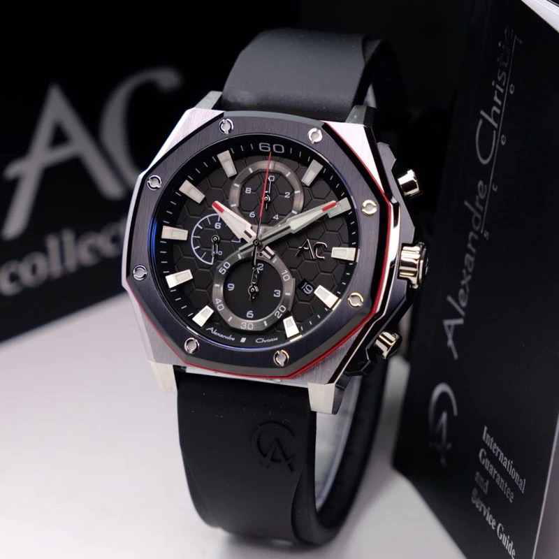 Jam Tangan Pria Alexandre Christie AC9502 Black Rubber Strap