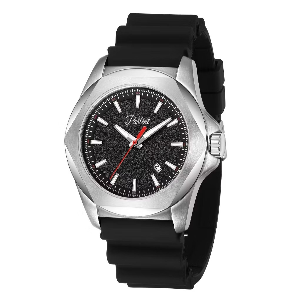 Jam Tangan Pria Parlent EXO Black Silver Rubber Strap