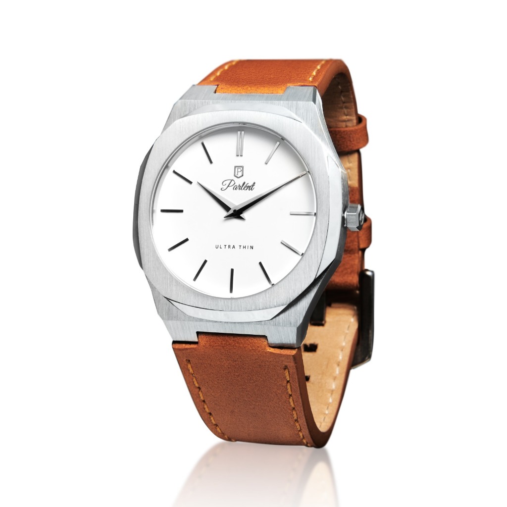 Jam Tangan Pria Palladium Classic Brown Silver Leather Strap