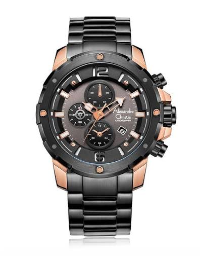 Jam Tangan Pria Alexandre Christie AC 6323 Black Rosegold Stainless steel