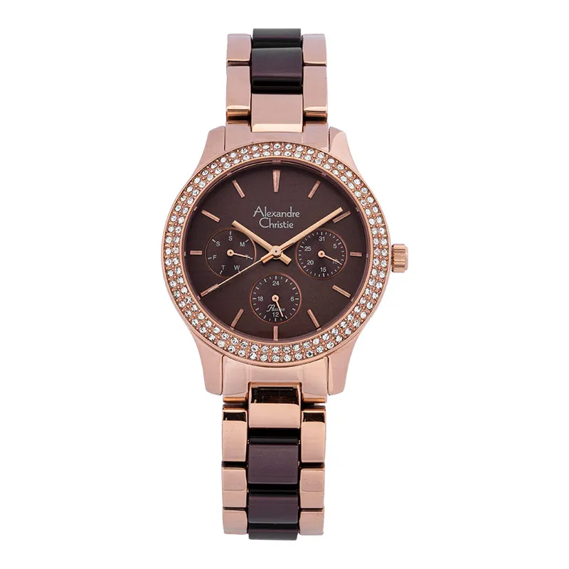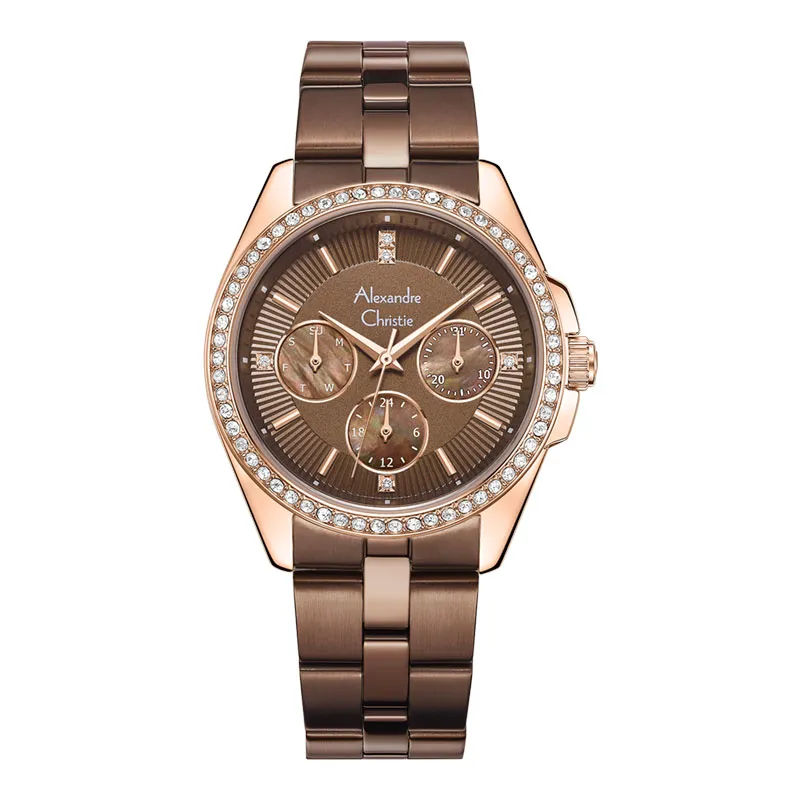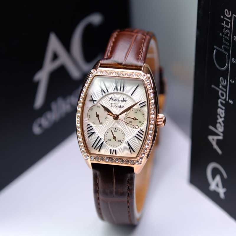 Jam Tangan Wanita Alexandre Christie Multifunction AC 2827 BFBRGSL2 Rosegold Brown Dial Brown Sta