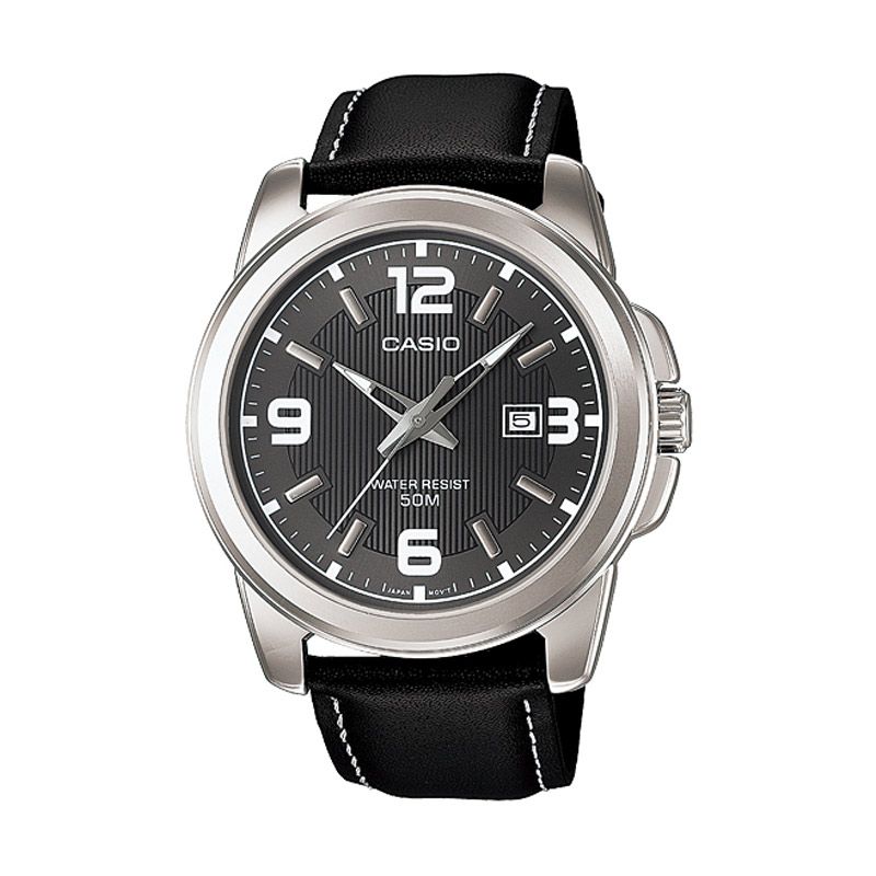 Jam Tangan Pria Casio MTP-1314L-8AVD Black Silver Leather Strap