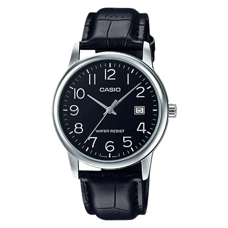 Jam Tangan Pria Casio MTP-V002L-1BUDF Black Silver Leather Strap
