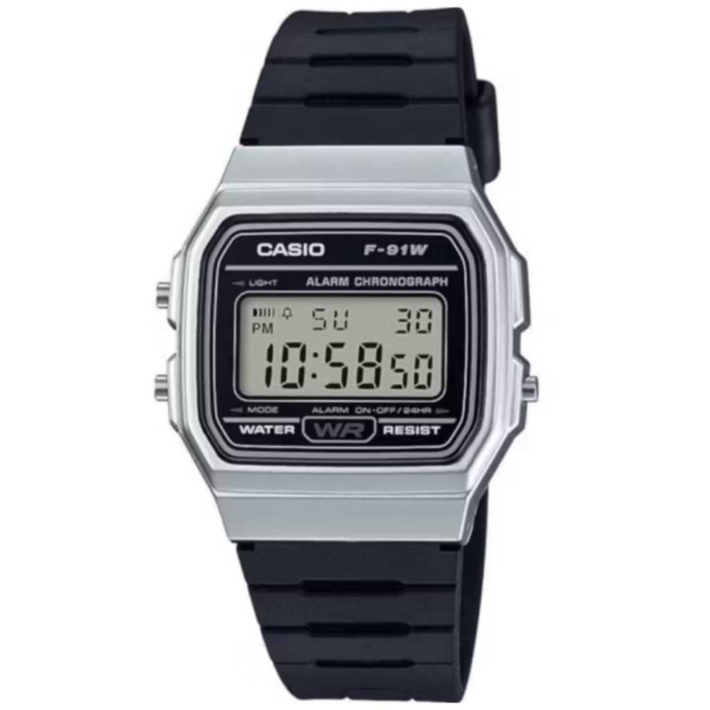 Jam Tangan Pria Casio F-91WM-7ADF Black Silver Rubber Strap