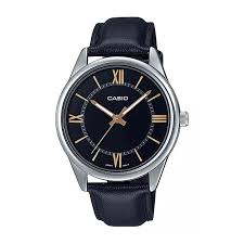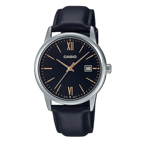 Jam Tangan Pria Casio MTP-V002L-1B3UDF Black Silver List Rosegold Leather Strap