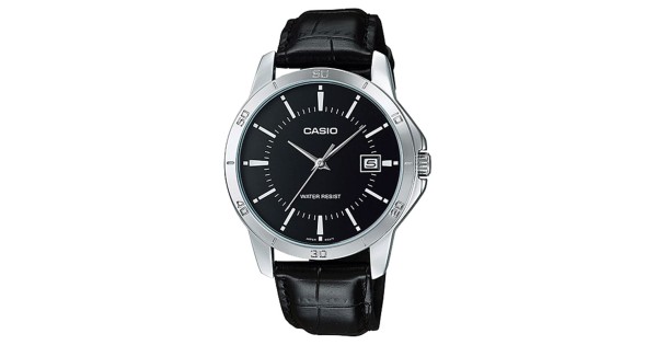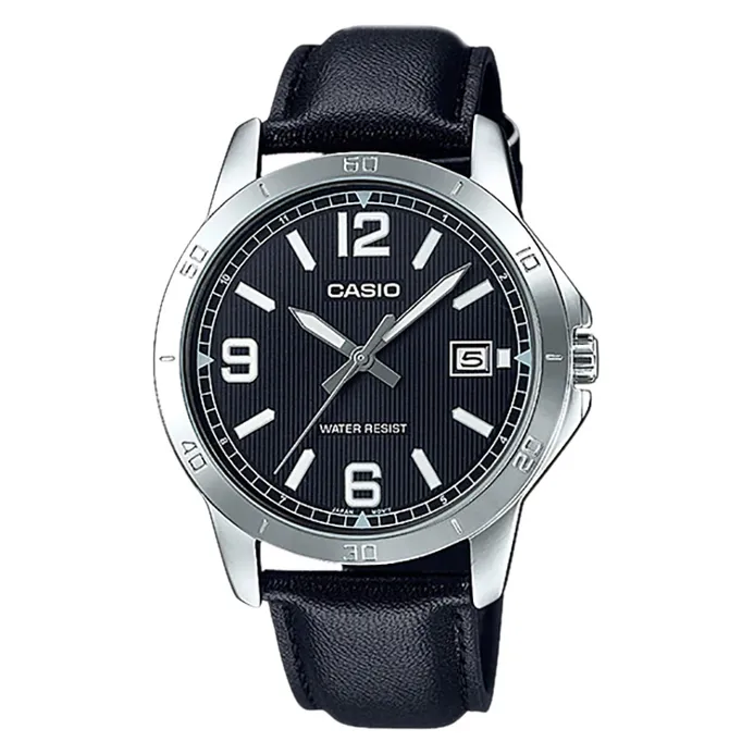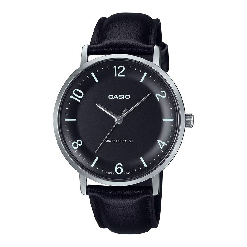 Jam Tangan Pria Casio MTP-VT03L-1BDF Black Silver Leather Strap
