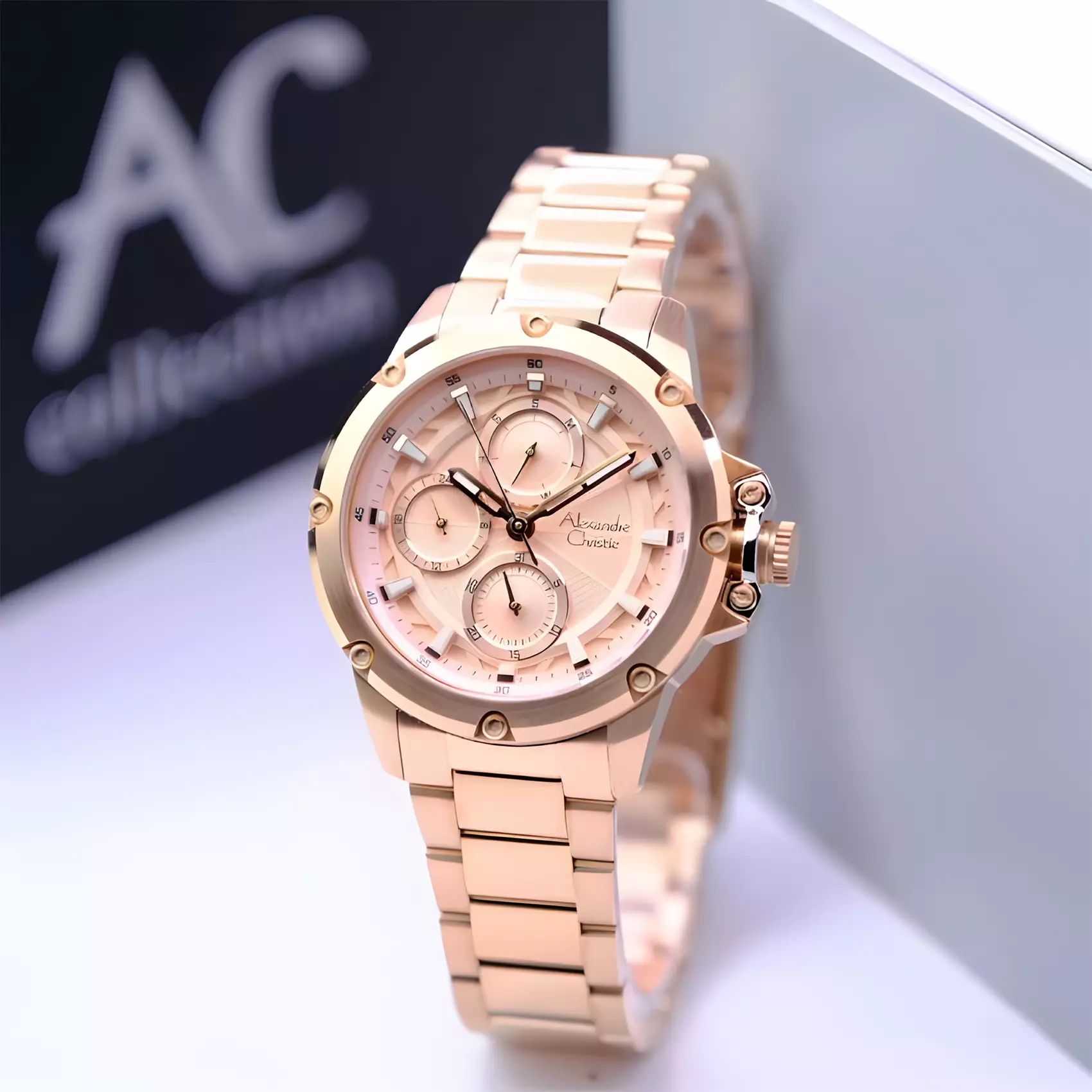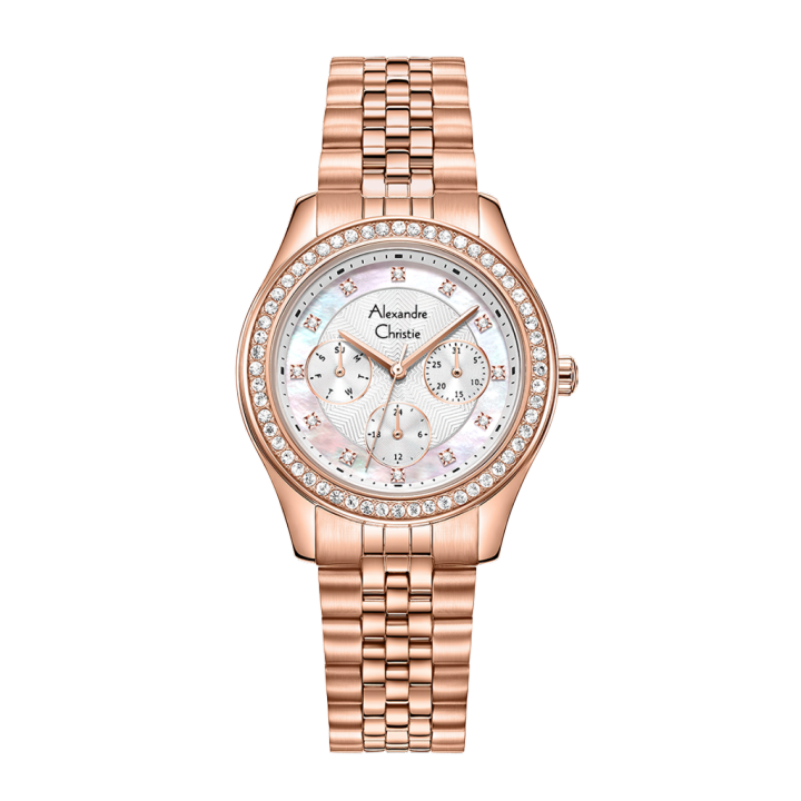 Jam Tangan Wanita Alexandre Christie Multifunction AC 2949 BF Rose Gold Stainless Steel Strap