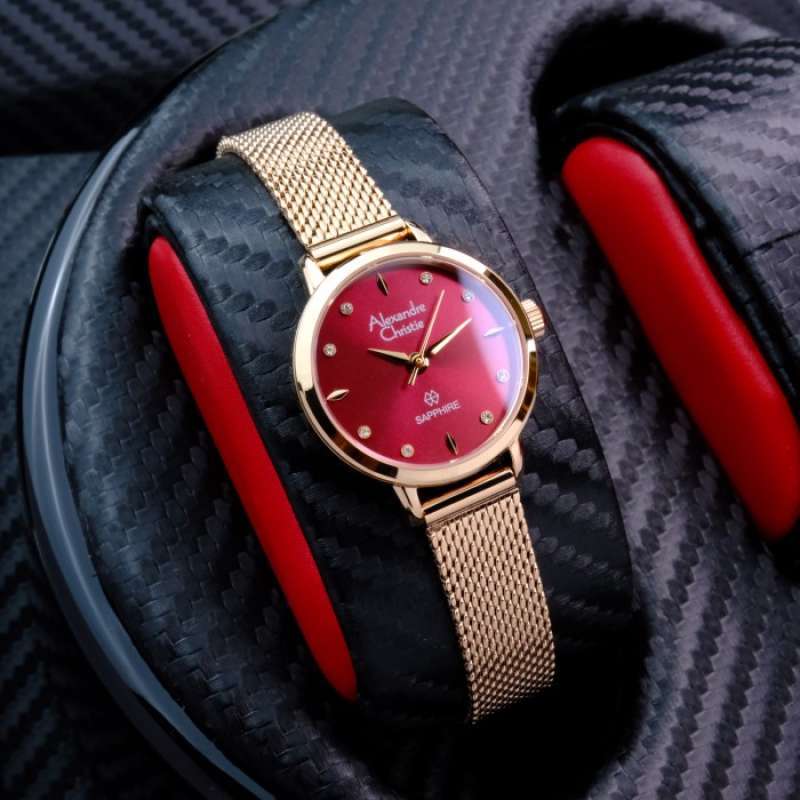 am Tangan Wanita Alexandre Christie AC2B40 Rosegold Dial Red Sapphire Stainless Steel