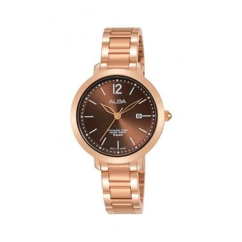 Jam Tangan Wanita Alexandre Christie AC 2682 Brown Rose Gold Stainless Steel Strap