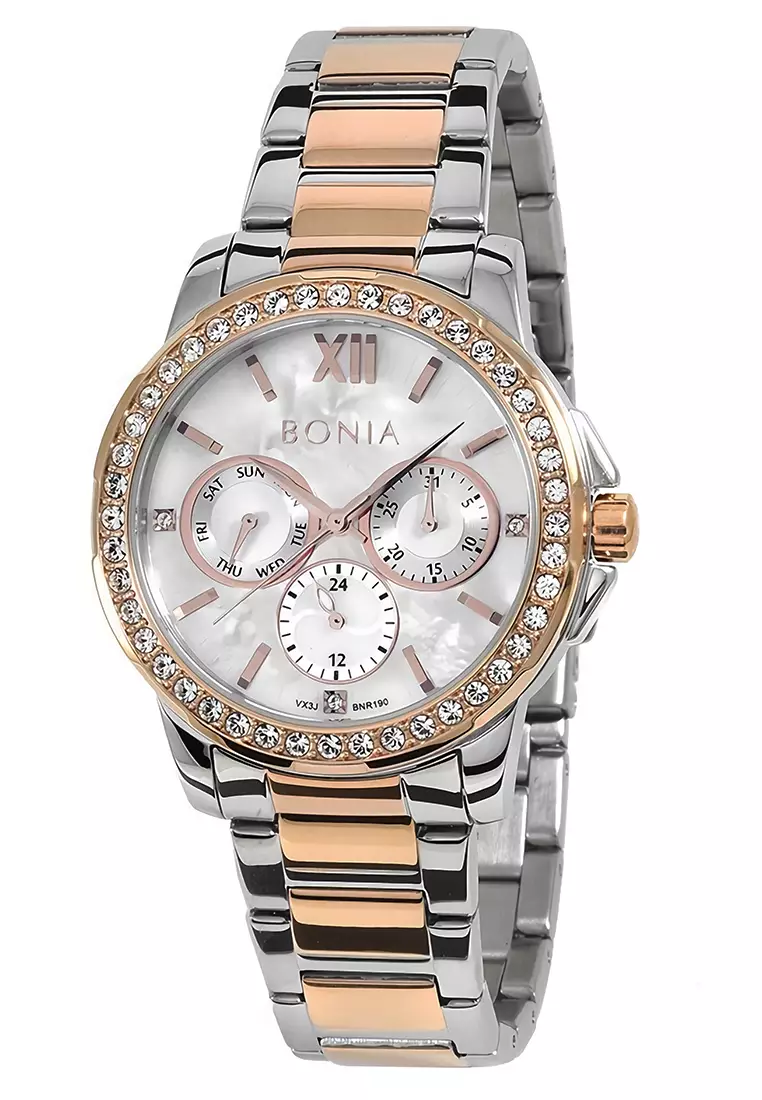Jam Tangan Wanita Alexandre Christie Multifunction AC 2299 BFBRGLN Soft Pink Dial Dual Tone Stain