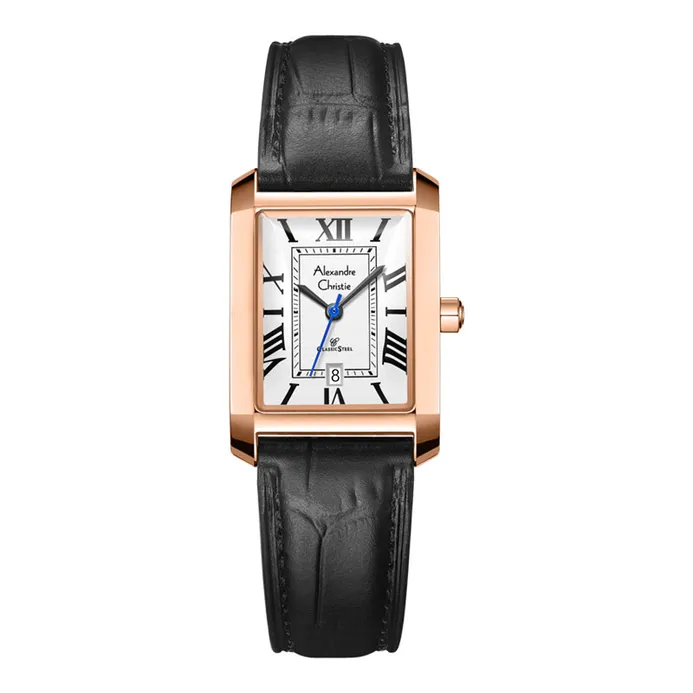 Jam Tangan Wanita Alexandre Christie AC 1008L Black Rosegold Leather Strap