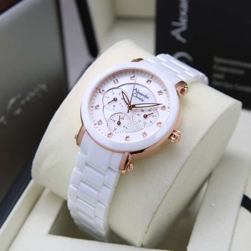 Jam Tangan Wanita Alexandre Christie AC 2B78 White Rosegold St. Steel With Ceramic Strap
