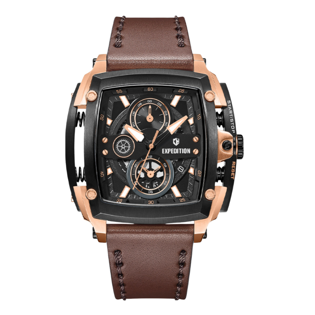 Jam Tangan Pria Gallant Vortex Brown Rosegold Leather Strap
