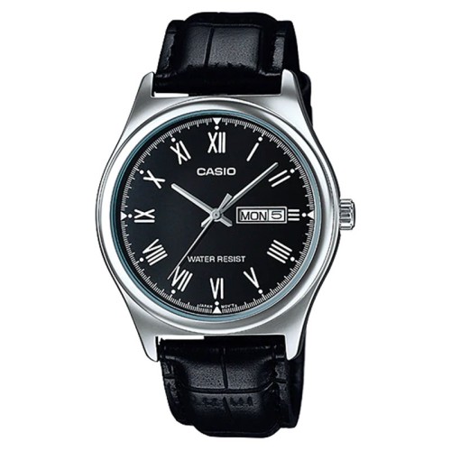 Jam Tangan Pria Casio MTP-V006L-1BUDF Black Silver Leather Strap
