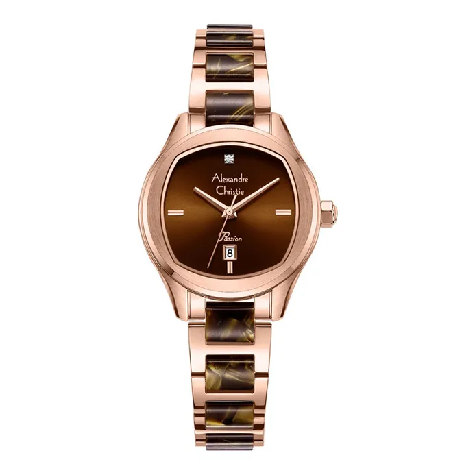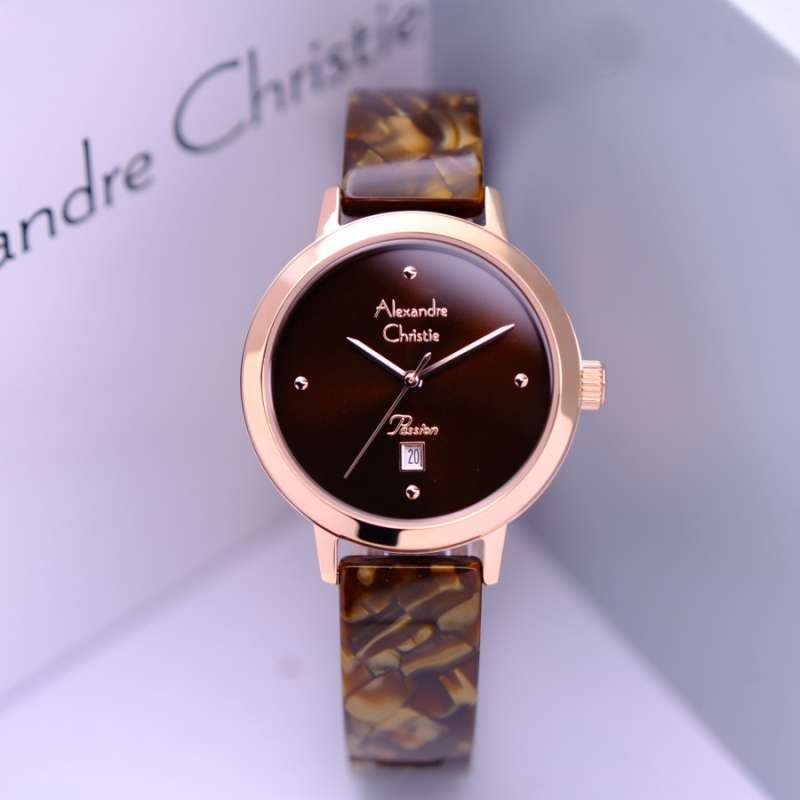 Jam Tangan Wanita Alexandre Christie AC 2A56 Brown Rosegold Stainless steel