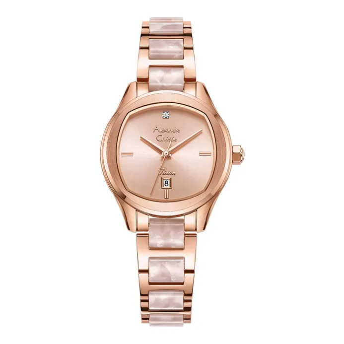 Jam Tangan Wanita Alexandre Christie AC 2463 Rosegold Dial Pink St. Steel With Ceramic Strap