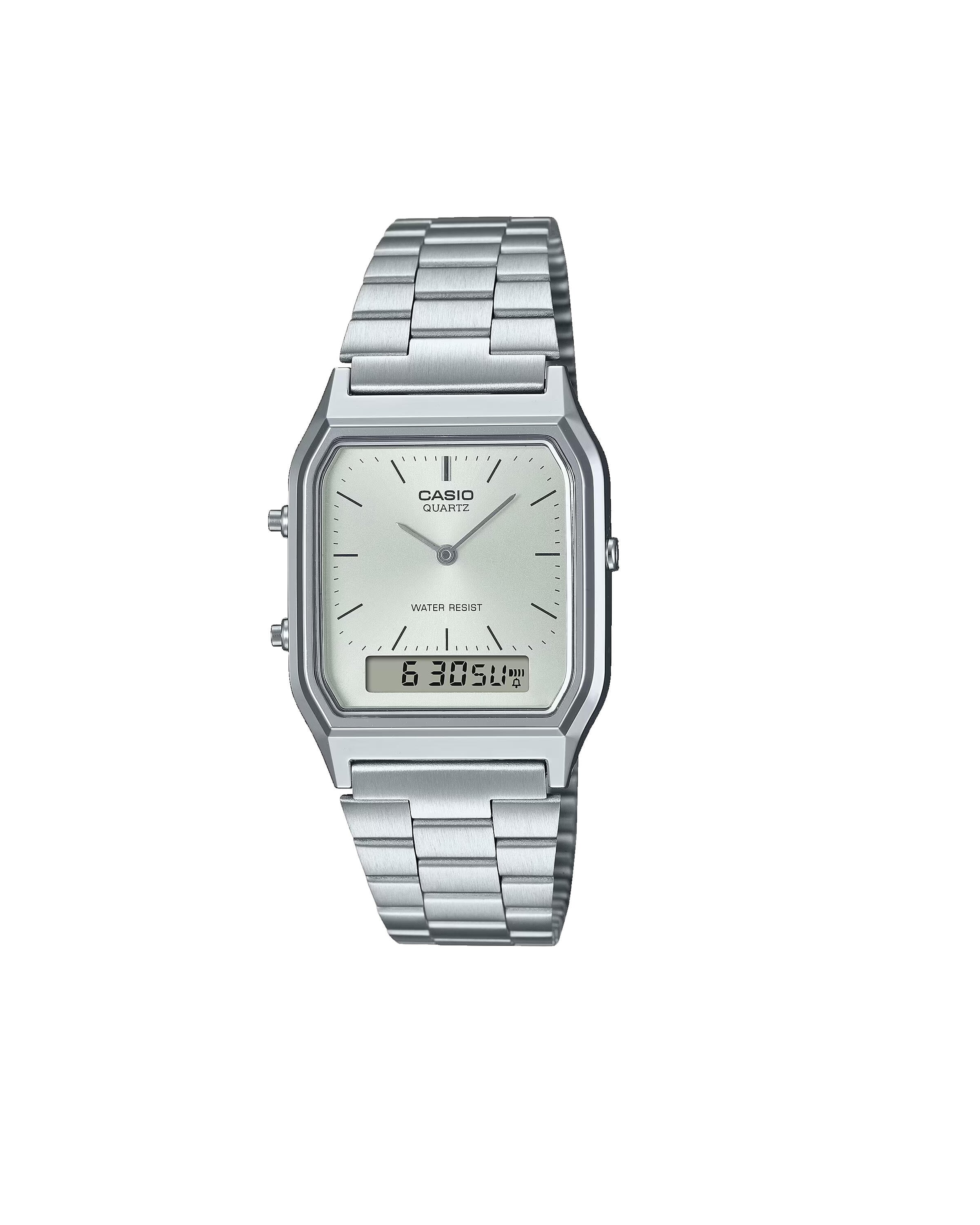 Jam Tangan Pria Casio AQ-230A-7DMQ Silver Dial White Stainless Steel