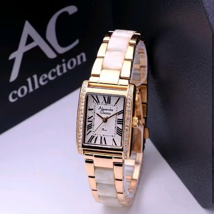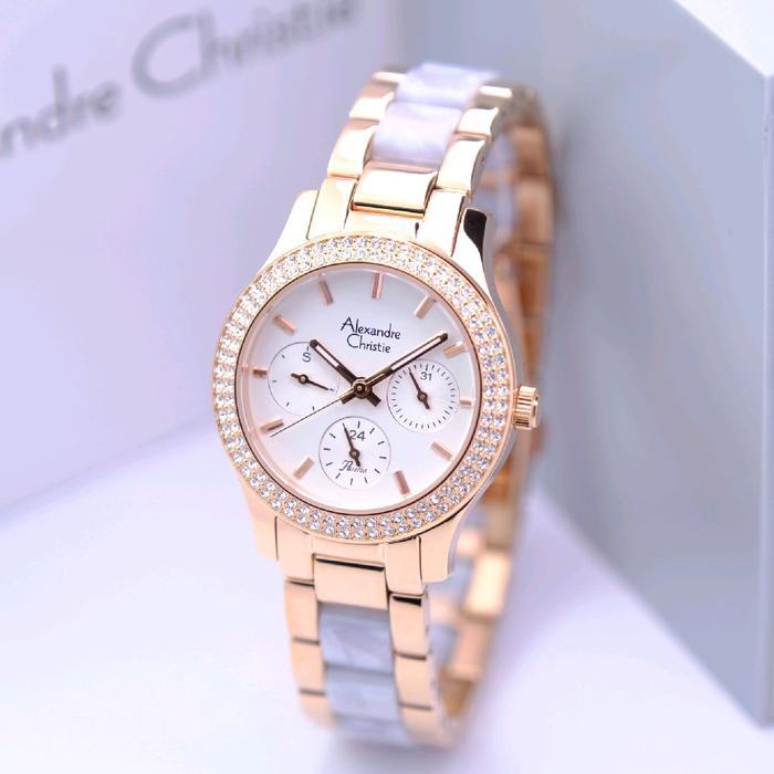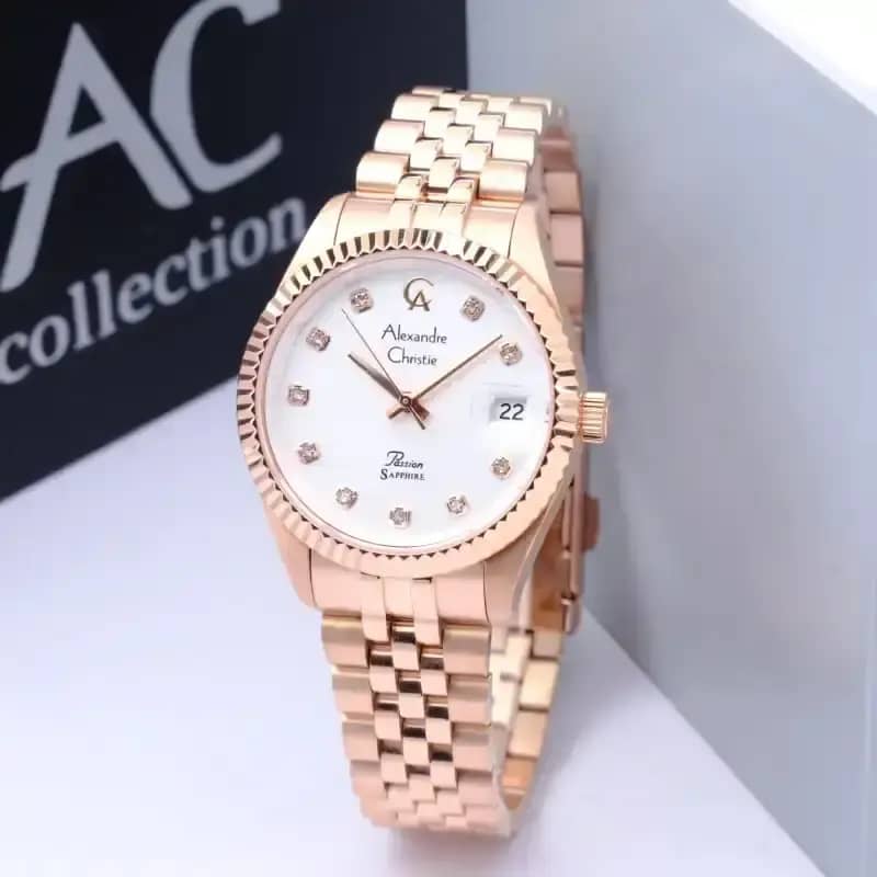 Jam Tangan Wanita ALEXANDRE CHRISTIE AC5013 Rosegold Dial White SAPPHIRE Stainless S
