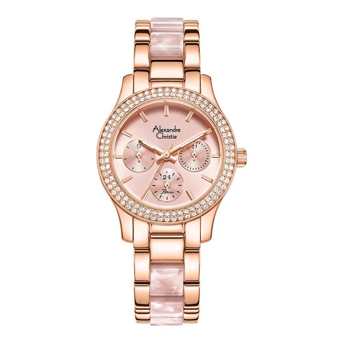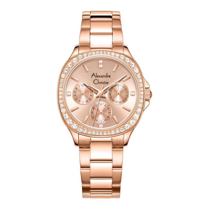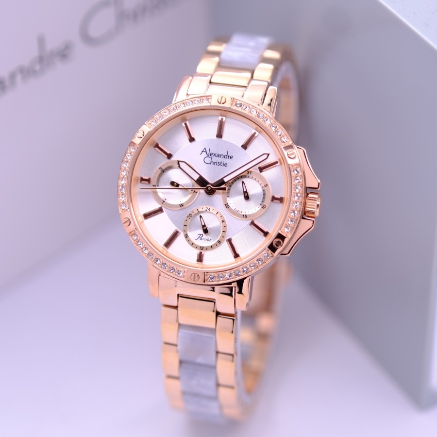 Jam Tangan Wanita Alexandre Christie Multifunction AC 2B85 Rosegold Stainless St