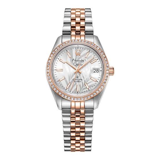 Jam Tangan Wanita ALEXANDRE CHRISTIE AC5012 Silver Combi Rosegold Stainless Steel
