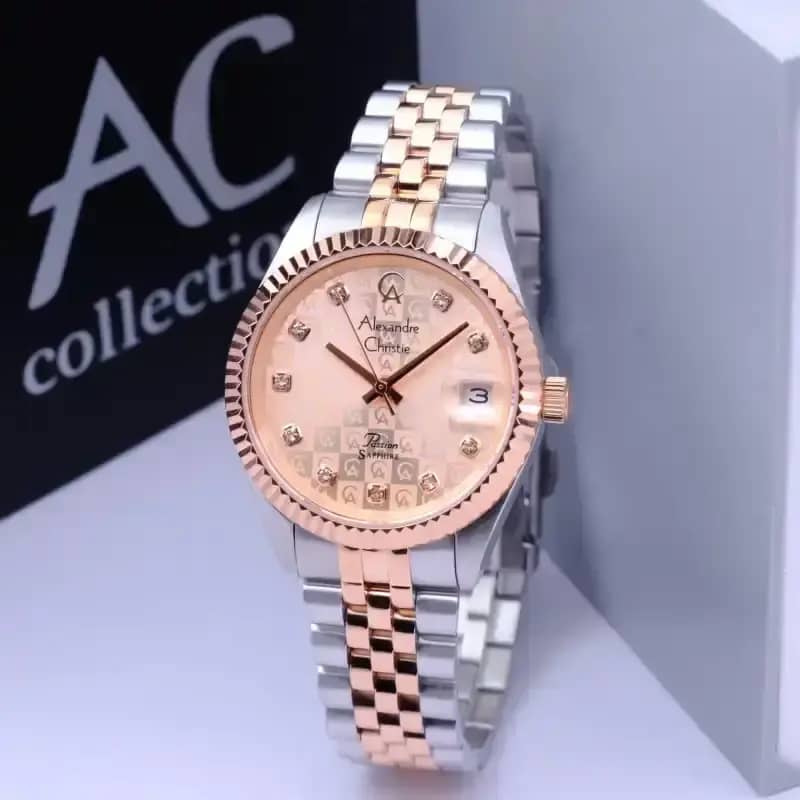 Jam Tangan Wanita ALEXANDRE CHRISTIE AC5014 Silver Combi Rosegold Stainless Steel