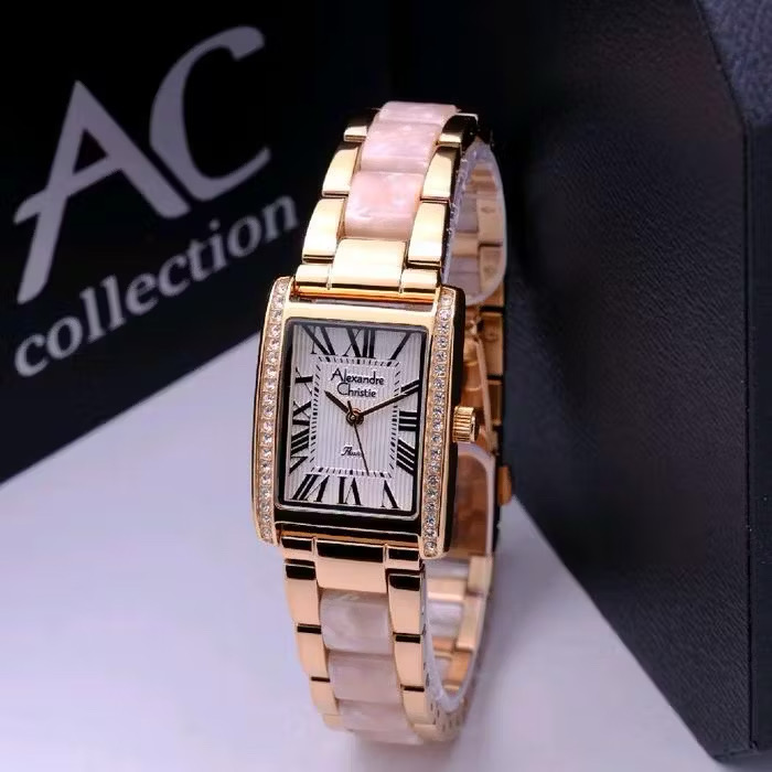 Jam Tangan Wanita Alexandre Christie AC 2B82 Rosegold Dial Pink St. Steel With Ceramic Strap