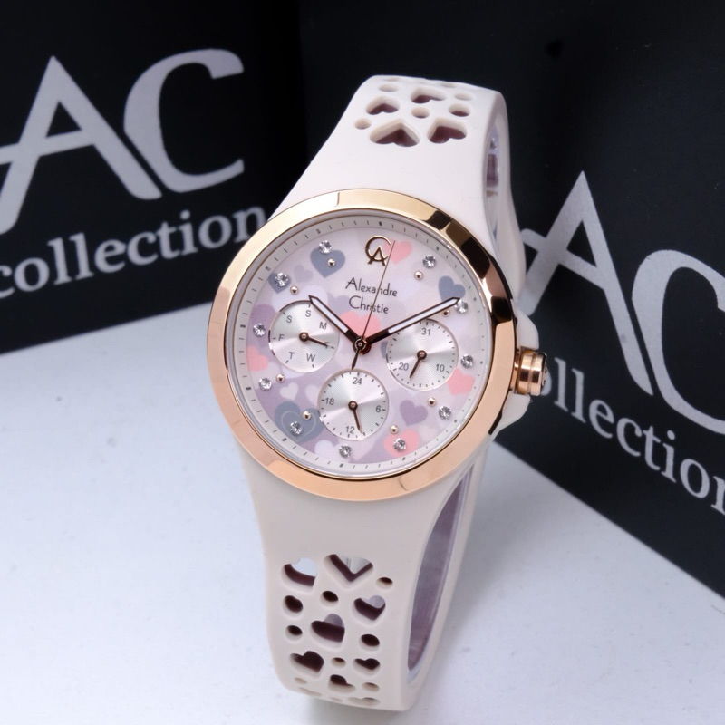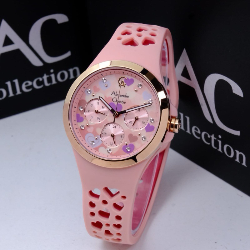 Jam Tangan Wanita ALEXANDRE CHRISTIE AC2B04 Pink List Rosegold Rubber Strap