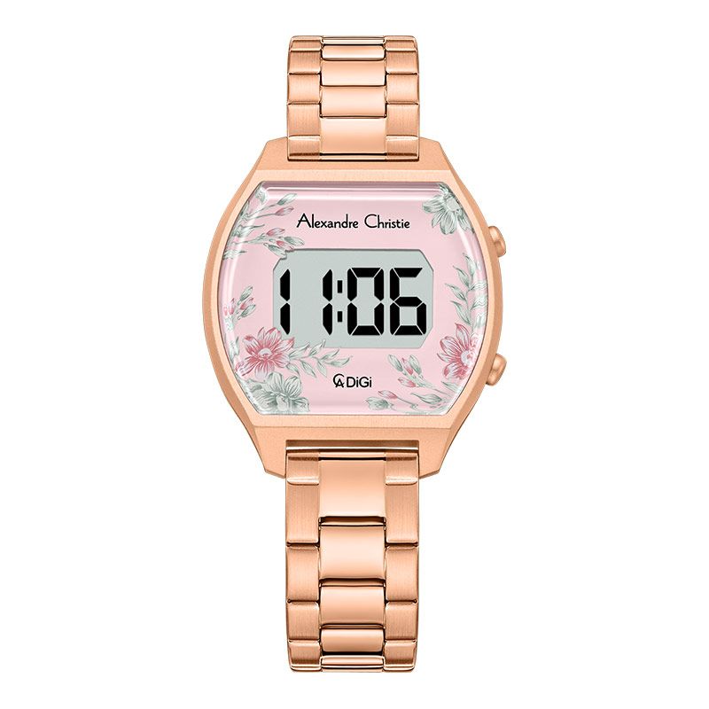Jam Tangan Wanita ALEXANDRE CHRISTIE DIGITAL AC9396 Rosegold Dial Pink Stainless Steel