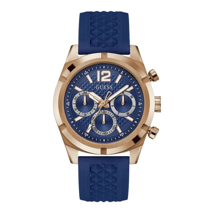 Jam Tangan Pria Guess W0569G3 Navy Rosegold Rubber Strap