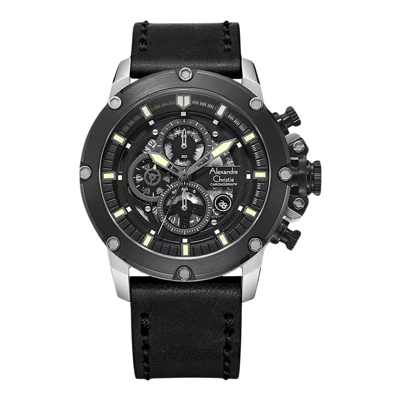 Jam Tangan Wanita Alexandre Christie Primo Steel AC 2B86 Black Silver Leather Strap