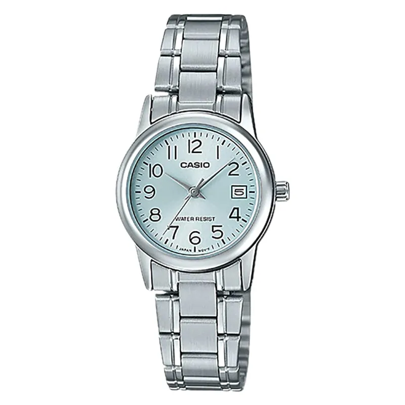 Jam Tangan Wanita Casio LTP-V002D-2BUDF Silver Dial White Stainless Steel
